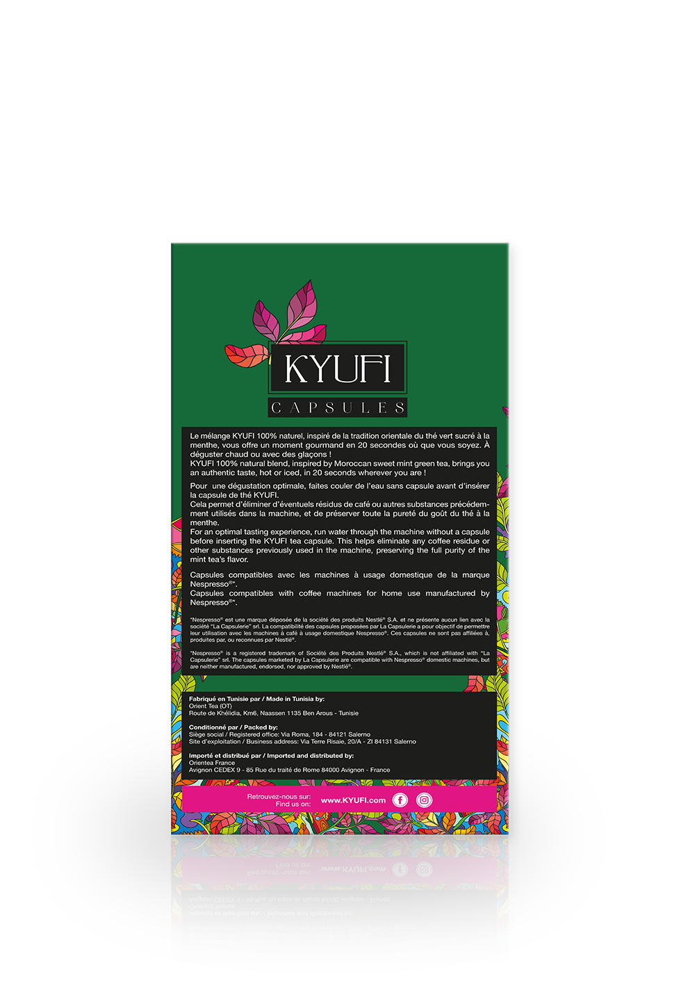 Le mélange Kyufi 100% naturel, inspiré de la tradition marocaine du thé vert à la menthe vous offre un moment gourmand en quelques secondes chrono. A déguster chaud ou avec des glaçons!