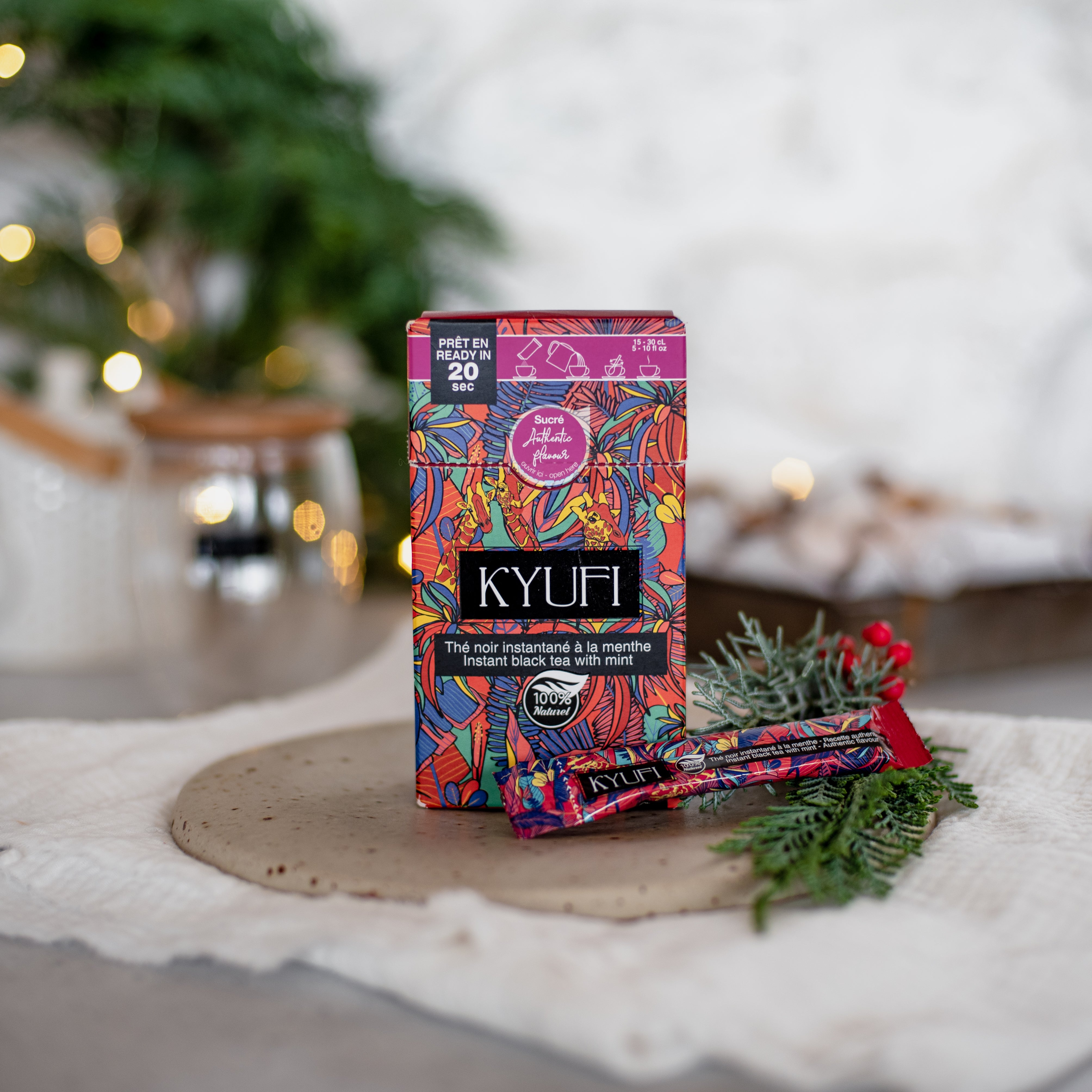 Savourez le véritable thé berbère et profitez de ses nombreux bienfaits dont la réduction de l’anxiété et l’amélioration de la digestion. La recette originale KYUFI marie harmonieusement les feuilles de thé noir, le doux parfum de la menthe et une touche de sucre. Bonne dégustation!